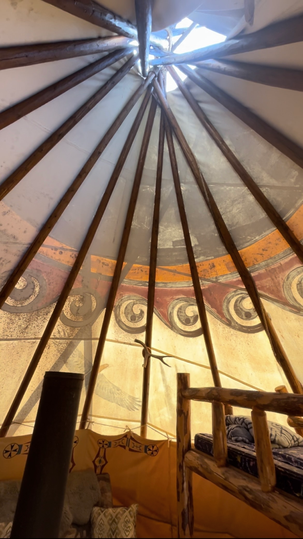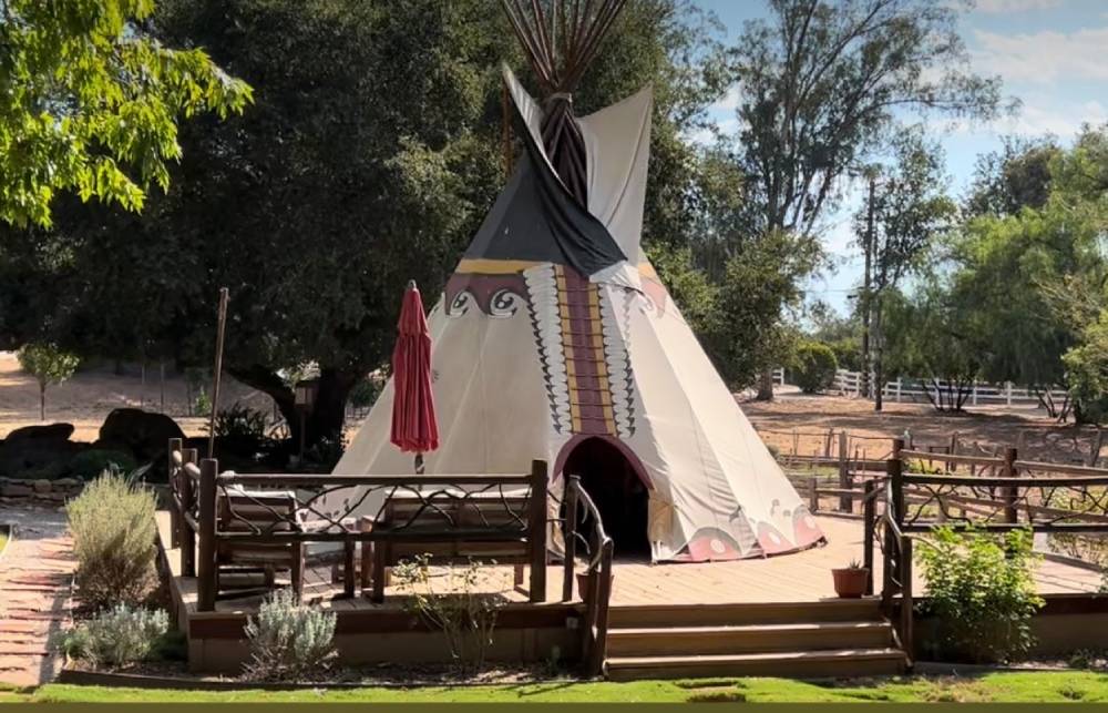 Picnic in the teepee at Indian Iron Farms