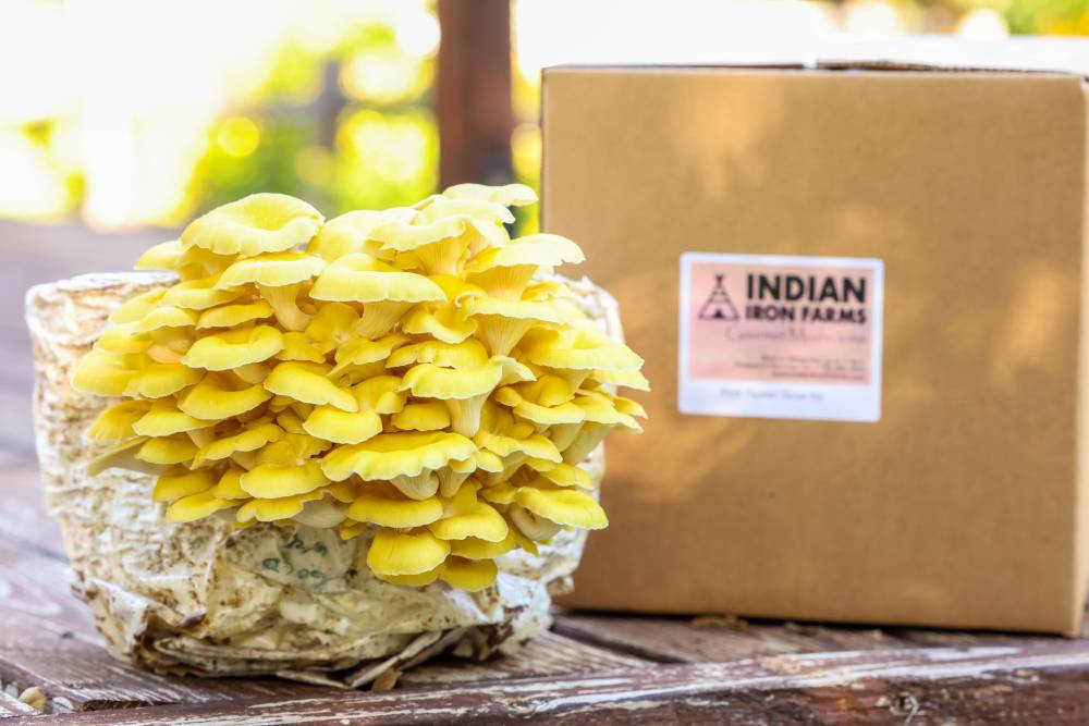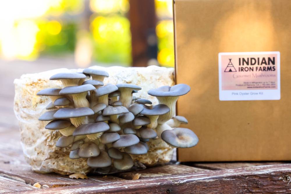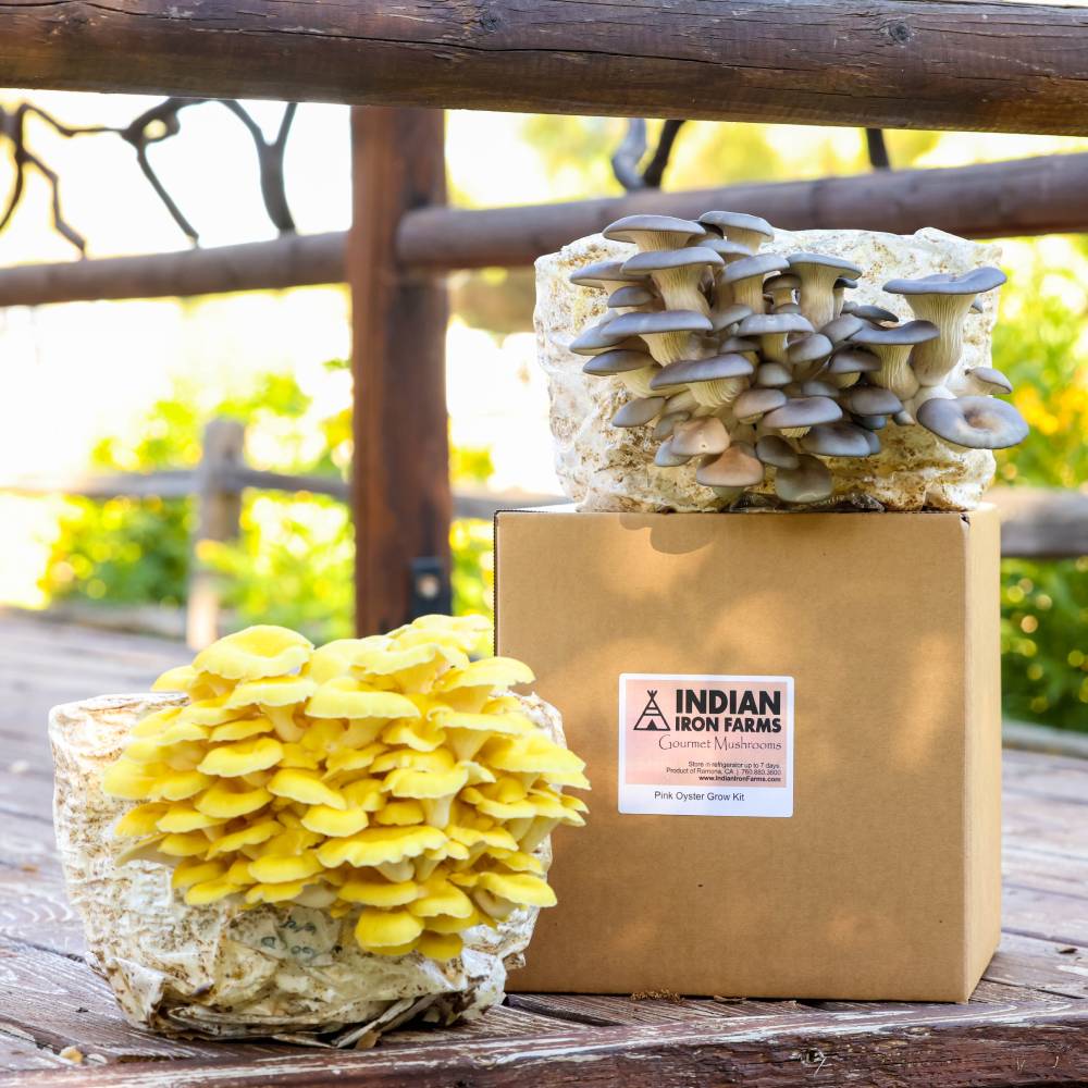 Grow your own mushrooms at home with a Grow Kit from Indian Iron Farms. Each kit will yield up to three pounds of mushrooms. The mushroom blocks will bloom two to three. Instructions are included in each kit with a plastic Grow Bag for a humidity tent.